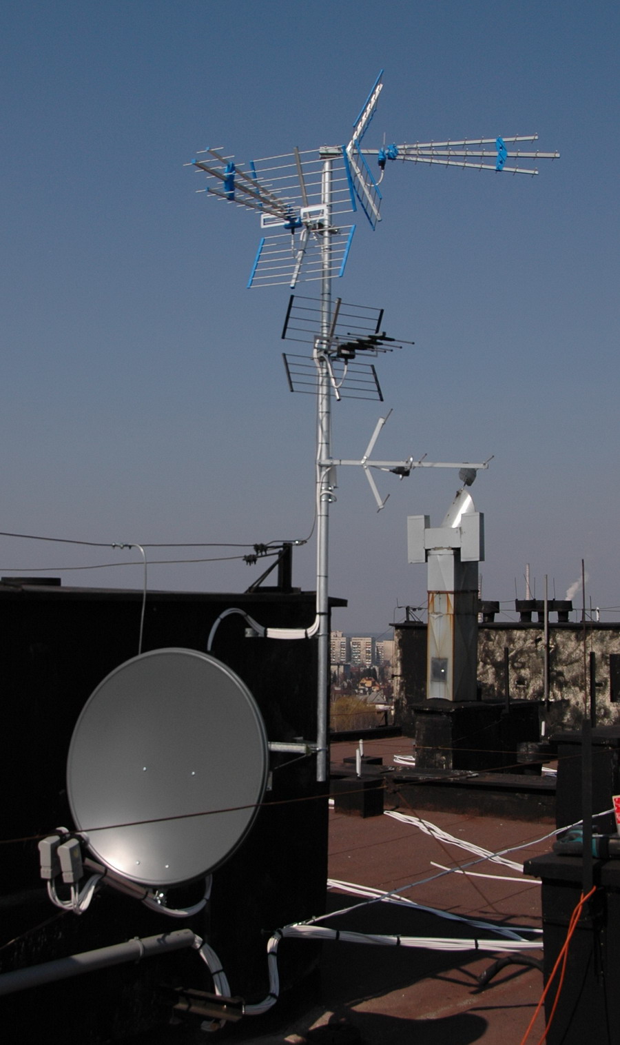 - Instalacja anteny zbiorczej przy ulicy Mariańskiej 1 w Chorzowie. 70 mieszkań. Odbiór Astra + Hot Bird, DVB-T MUX 1,2,3, czeskie, lokalny, Cyfrowy Polsat, UKF oraz DAB+. Jeden zestaw antenowy. Dystrybucja na światłowodach. Do każdego mieszkania doprowadzono dwa przewody antenowe.